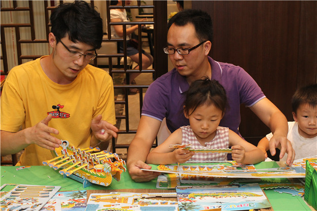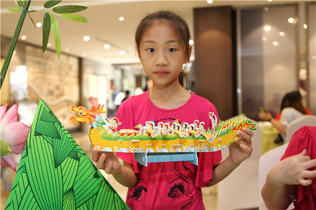 赛龙舟,是端午节的主要习俗,现已列入国家级非物质文化遗产名录。现场的很多小朋友都表示很喜欢看龙舟赛,要造一个独一无二的龙舟。在龙舟DIY活动中小朋友们发挥自己的奇思妙想,在龙舟模型上造出属于自己的创意龙舟。