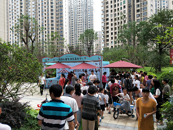 这里有爸爸妈妈的陪伴,物业哥哥姐姐的节日问候,趣乐欢享的小伙伴,还有那露天电影……