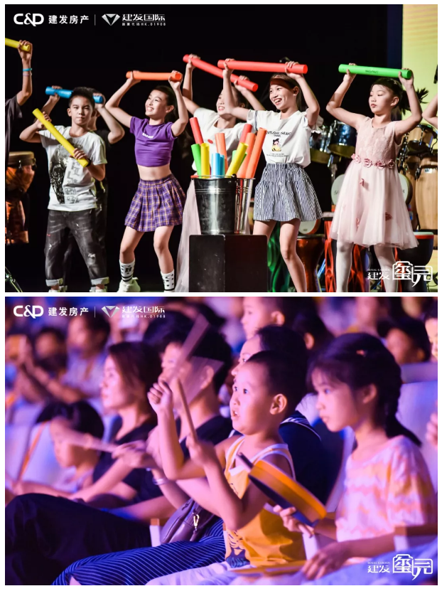 暖场视频过后,主持人向观众介绍珠海建发·玺园新中式人文风范,讲述其十层低密板式设计、纯正苏式园林等各方面特点。随着开场表演架子鼓的鼓声敲响,演出正式开始,现场瞬间被点燃,观众跟随着鼓声节奏挥手、拍掌。